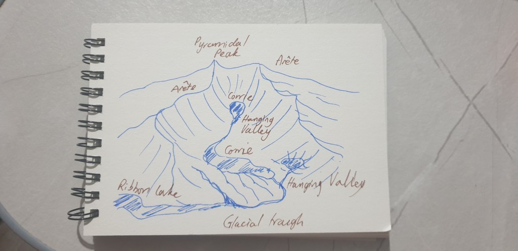 The sudden change in moods, where the air feels sharper, cleaner, as if each breath carried centuries of stories. The glacial valleys, U-shaped and scenes from fantasy movies stood as reminders of powerful natural processes, while the lakes themselves reflected not just the sky, but something in a whisper and more spiritual. This is physical geography you can see, touch, and feel. It can not just be captured in a diagram in a textbook, as it is a lived experience.